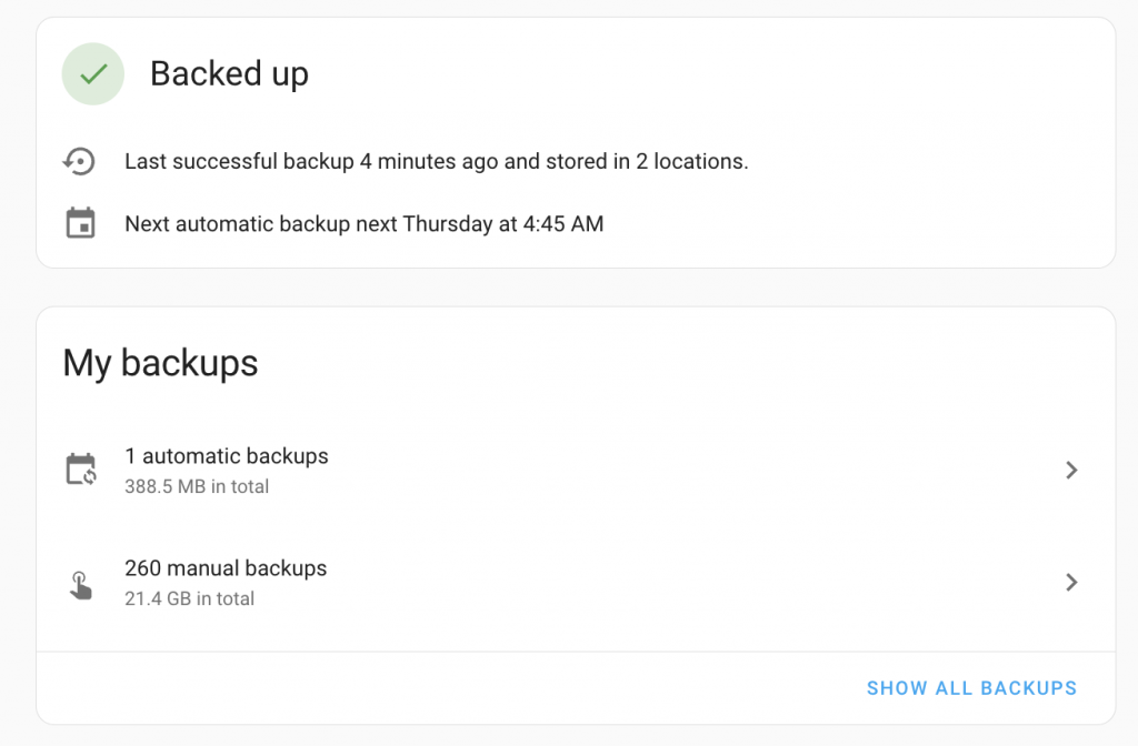 Das ist die neue Ansicht. (Die manuellen Backups wurden immer vor Updates gemacht)